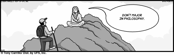 My mom sent me this clip; her and my father found it amusing, what with me being a philosophy major, and with the question “What do you do with that anyways?” being a near constant in my life since choosing it.